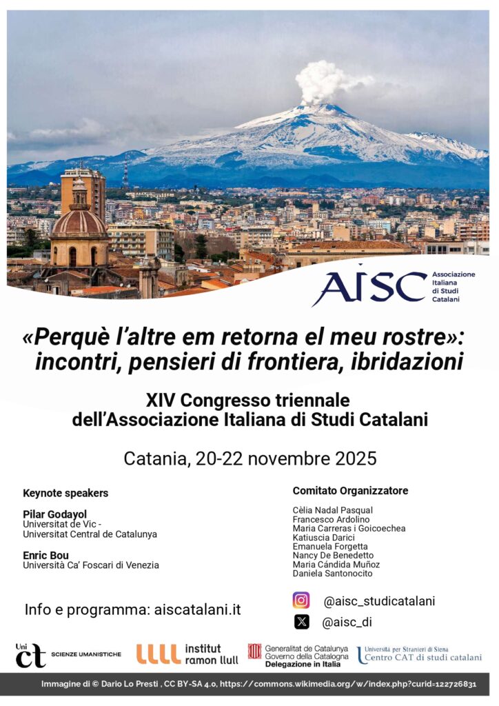 L’Associazione Italiana di Studi Catalani organizza il congresso di fine mandato presso l’Università di Catania dal 20 al 22 novembre 2025. Il tema centrale dell’incontro verte sui concetti di mescolanza, incontro e rapporto con l’alterità.